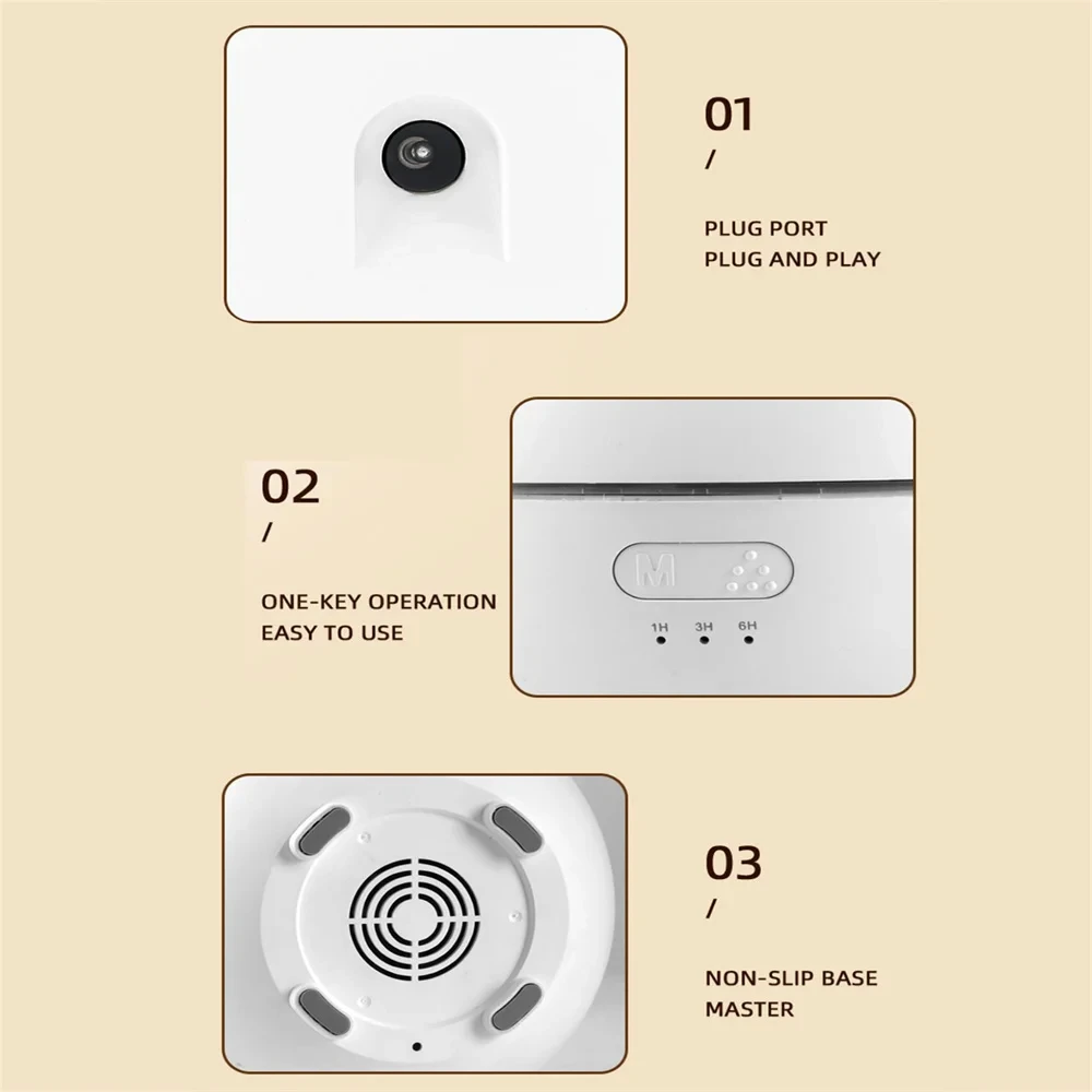 - 2. With the timer options of 1 hour, 3 hours, 6 hours and continuous on mode, you can customize the mist output to create a calm and relaxing atmosphere that suits your needs.