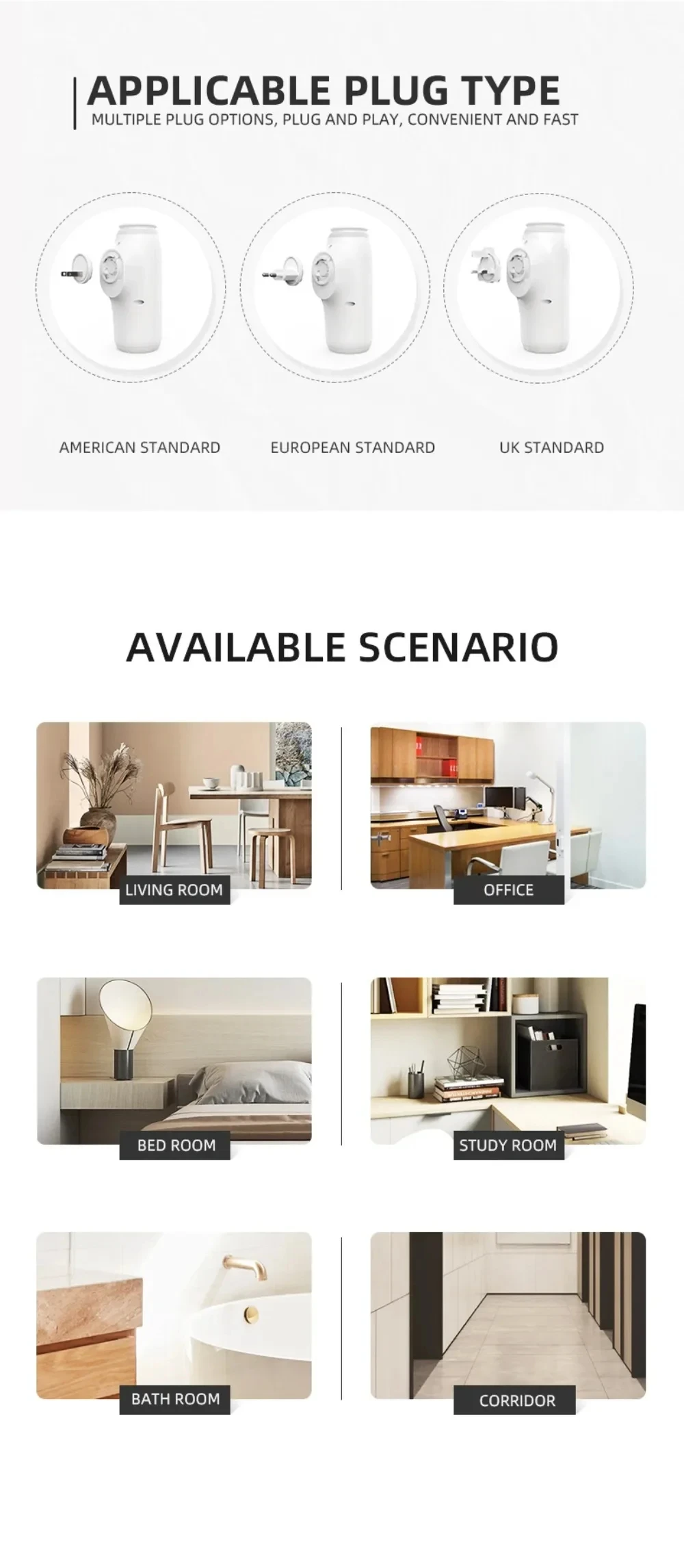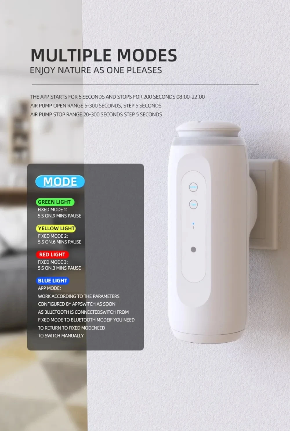 Enhance your home with our Flavoring Diffuser! This Socket Style device not only diffuses room fragrance with its built-in night light, but also connects to Bluetooth for convenient control. Enjoy a fresh and inviting living space with customizable scent options.