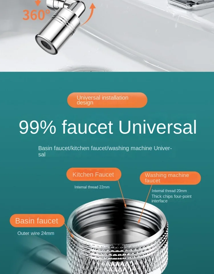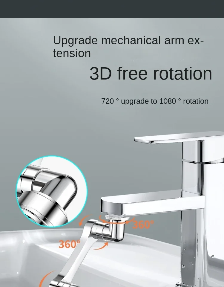 1080°rotation: the rotating faucet is widely used for bathroom or kitchen sink faucets. It can be bent or folded at will,, that is, the flanks rotate up and down 360°, and the spout rotates left and right 360° to let the water flow to every corner of the sink.