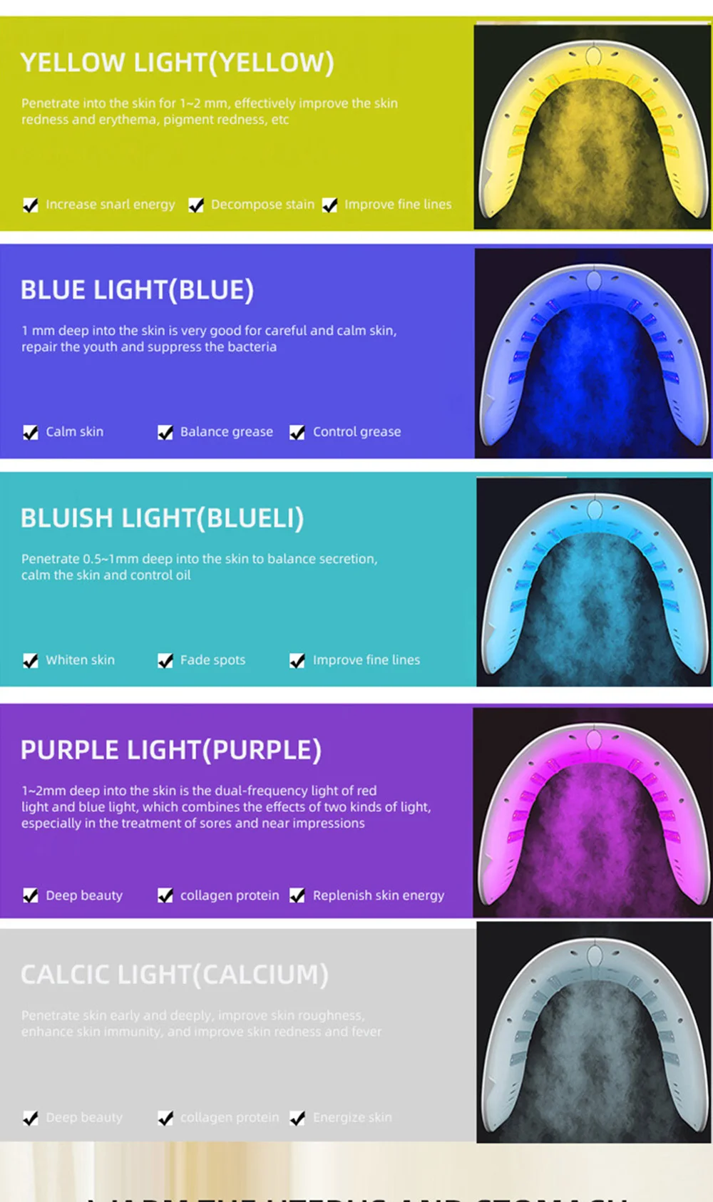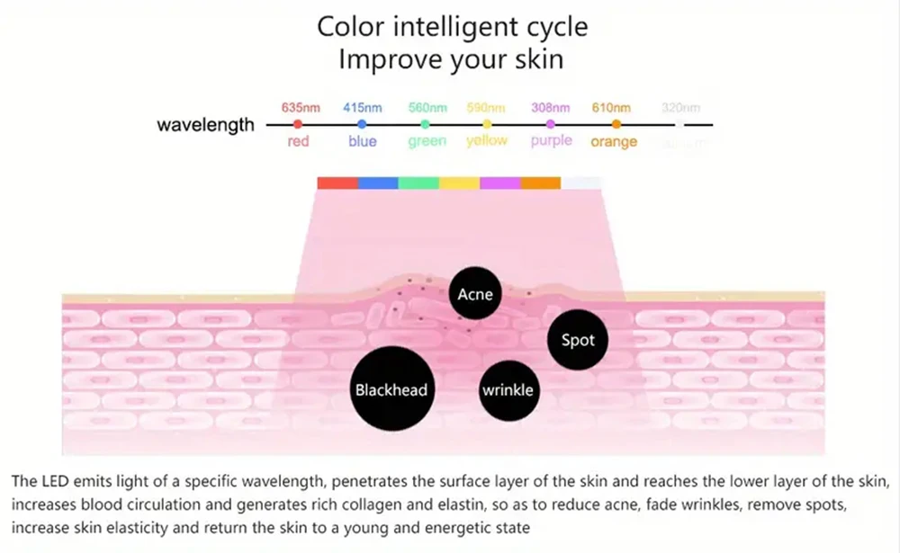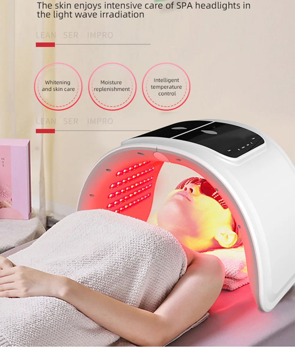 This 7-in-1 color face SPA facial device provides skin rejuvenation through light therapy for both the face and body.